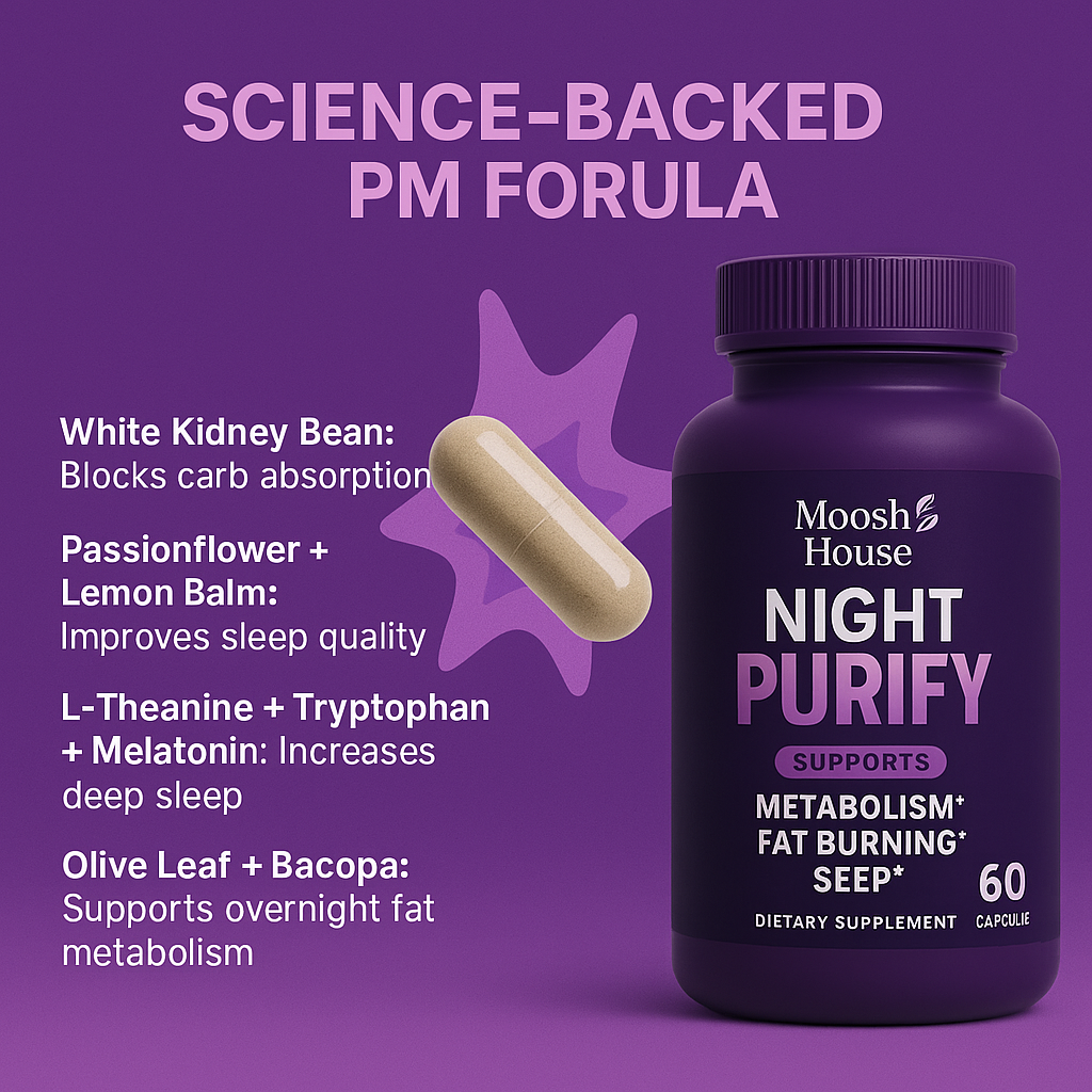 Night Purify is an intense night fat burner designed to work while you rest. Its powerful blend helps your body naturally detoxify, boost metabolism, and target stubborn fat — especially around the waist and midsection — while promoting deeper rest and recovery.